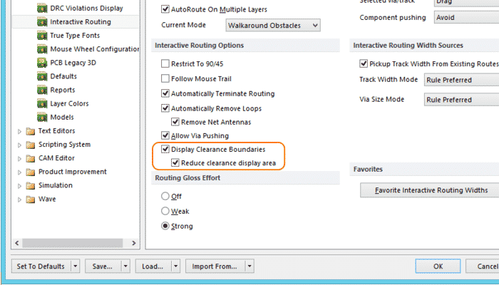 Để bật tính năng này truy cập vào O -> P rồi tick chọn mục Display Clearrance Boudaries. Lưu tý, với thiết kế lớn nên tích thêm mục Reduce clearances Boudaries để giảm tải xử lý cho hệ thống máy tính.